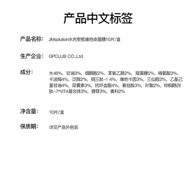 蕴含12种维他命复合物成分,给肌肤带来由内而外的滋养,有效保持水润。更加柔和的铜氨纤维膜面质地,触感温和,使用更舒适。