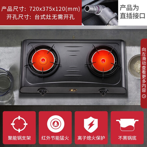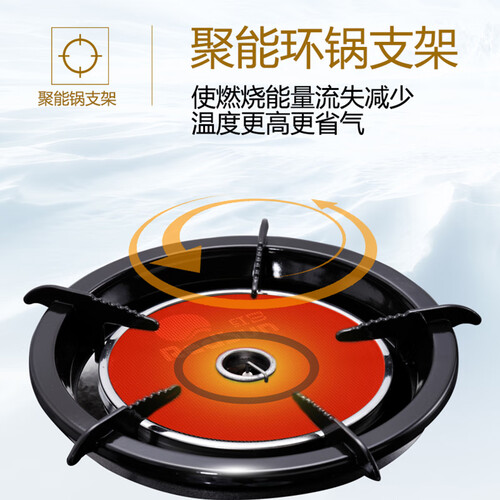 聚能环锅支架的配置,使燃烧能量流失减少,温度更高更省气。结合离子熄火保护功能,及时切断气源,保障烹饪安全性。
