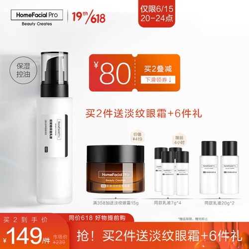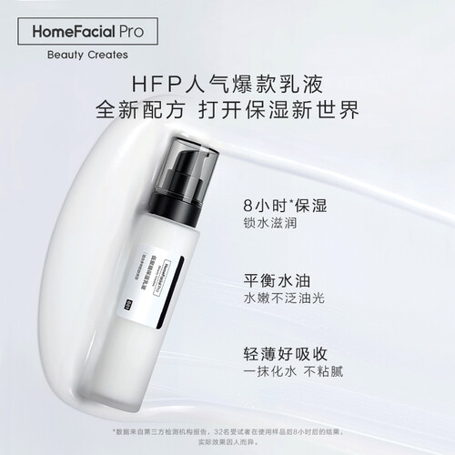HomeFacialPro乳液,人气控油隐形乳液,一抹化水,清爽保湿。高保湿复合配方,改善肌肤干燥,持久锁水,长效水润。