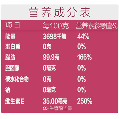 物理压榨工艺,减少营养的流失,保证食用油营养充分。含有亚油酸、亚麻酸物质,及时补充体内所需要的营养,为身体保驾护航。