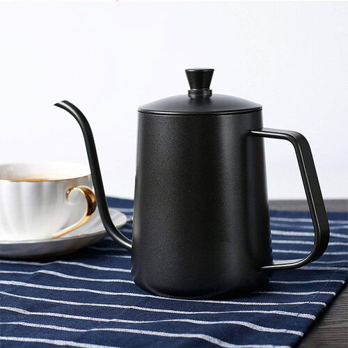 焙印细口黑色涂层手冲带盖咖啡壶