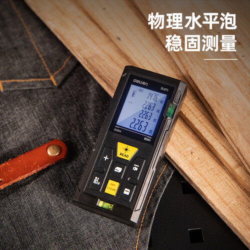 得力手持式激光测距仪,100米量程,满足您的日常工作需求。面积、体积、勾股皆可轻松搞定,功能多样工作效率更高。