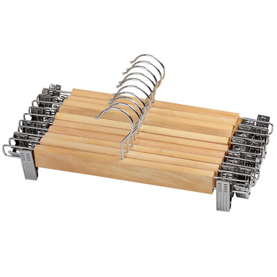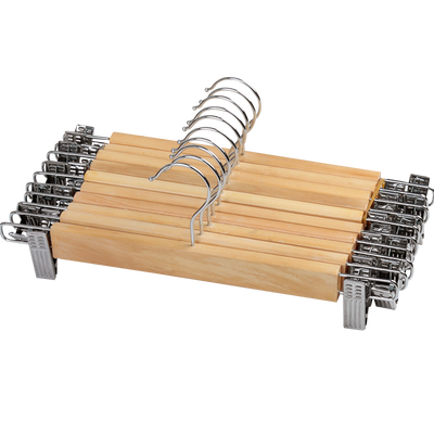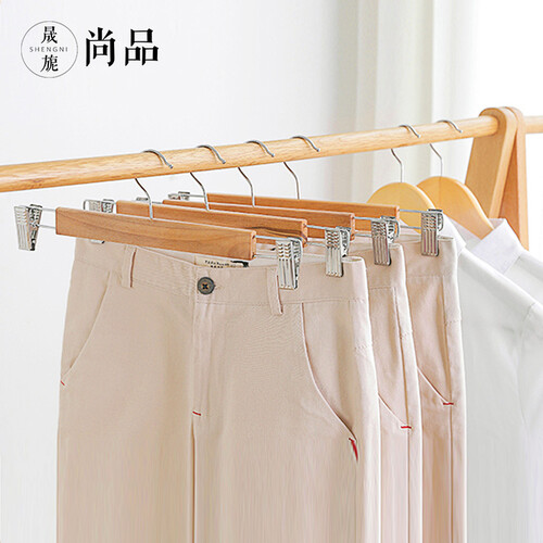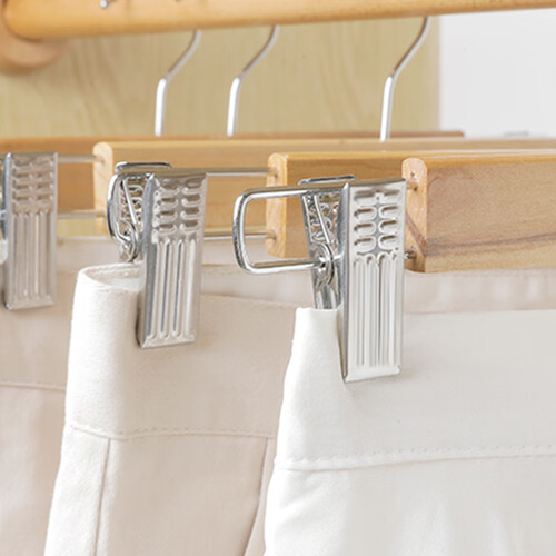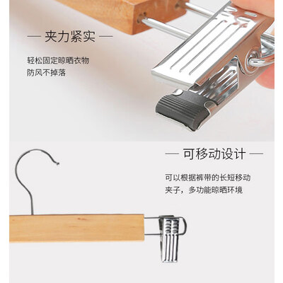 夹头采用不锈钢材质制作,做工精细,夹力更强,裤子挂置不易掉落。衣架是原木质感,清新自然,触感光滑又细腻。