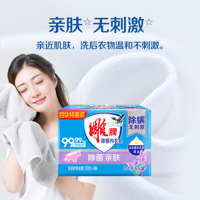 内衣专用的洗衣皂,能去除常见污渍,专业呵护贴身衣物;以及含有的抗硬水配方,能让洗后衣物不发硬,穿着更舒适。