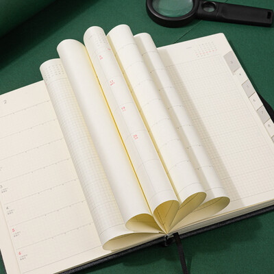 内页的纸张采用米黄色设计,色泽柔和细腻,更加防护你的双眼。侧边设有月份索引,可以轻松帮助你搜索内容。