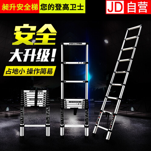 航空铝合金材质制成的伸缩梯,收纳方便,不占空间。加厚的铝材,承重能力更强,保持不错的稳固性。