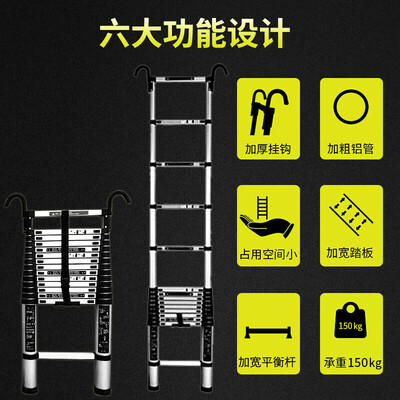 尼龙织带设计,可以防止梯子晃动,提高安全性。整体使用航空铝材,韧性更强,拥有耐腐蚀的效果。