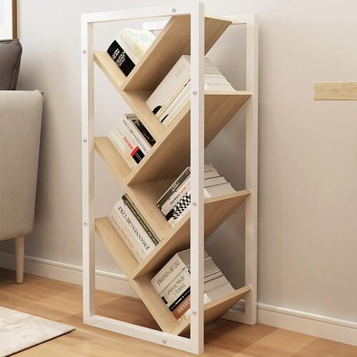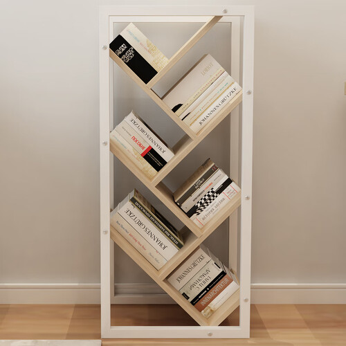 采用钢木结合的设计,加粗钢管框架既美观又增加了稳定性。多层树形结构,错落有致方便收纳书籍,节省室内空间。