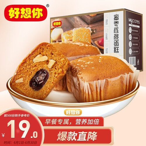 蜜枣和核桃夹心的面包,口感酥脆软滑,营养健康又美味。严谨的控温烘焙,使其外观金黄油润,看着就诱人食欲。