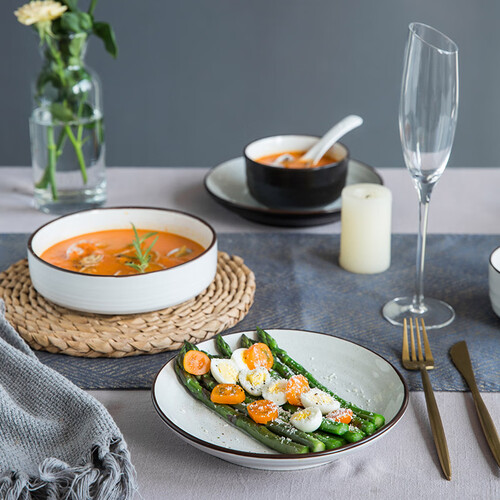 采用芝麻釉面设计,有效提升餐盘的质感,轻松增添就餐的精致感。餐盘采用浮雕螺纹设计,有效增加美观度。