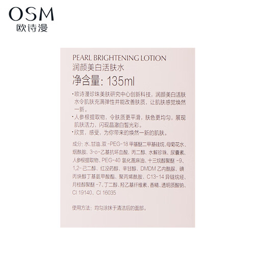 采用珍珠多肽提取,温和亲肤,令肌肤匀亮嫩滑,添加亮肤烟酰胺成分,减少肌肤色素,改善暗沉发黄,提升保湿力,有效呵护肌肤。
