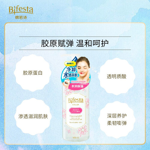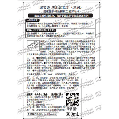 不添加色素香料的卸妆水,使用后不会给肌肤造成额外的负担,蕴含胶原蛋白和透明质酸等成分,卸妆的同时为肌肤持久补水保湿。