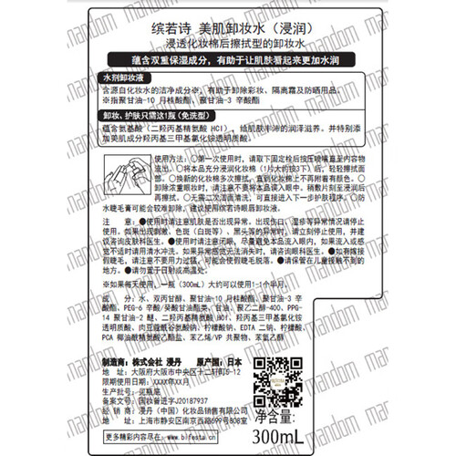 缤若诗 曼丹洁肤卸妆水