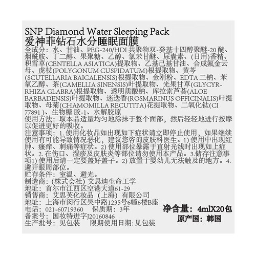 蕴含珍贵的钻石提取物,可提亮肤色,使之更加白皙动人。独立小包装,不管是出差还是旅游,携带都很方便。