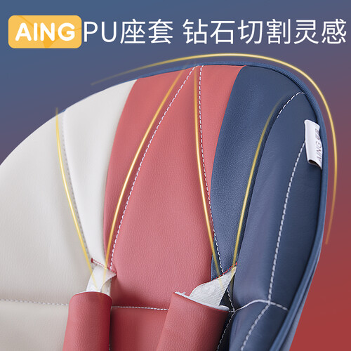 优质PU皮革材质,时尚拼色设计,舒适与美观二合一。靠背可三挡位调节,适应宝宝坐躺卧三种需求,满足宝宝生活需要。
