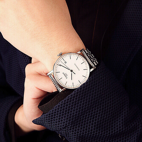 简洁的大表盘设计,时尚大气,不锈钢材质的表带设计,历久弥新,搭配做工细腻的珠宝扣设计,尽显儒雅的男士魅力。