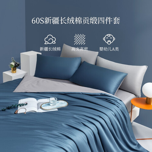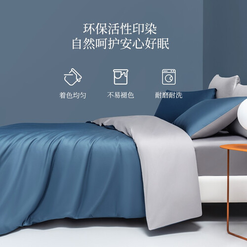 这款四件套采用活性印花工艺,不含有害物质,助力打造安全好睡眠。精选新疆长绒棉制作面料,触感细腻不刺激,使用倍感舒适。