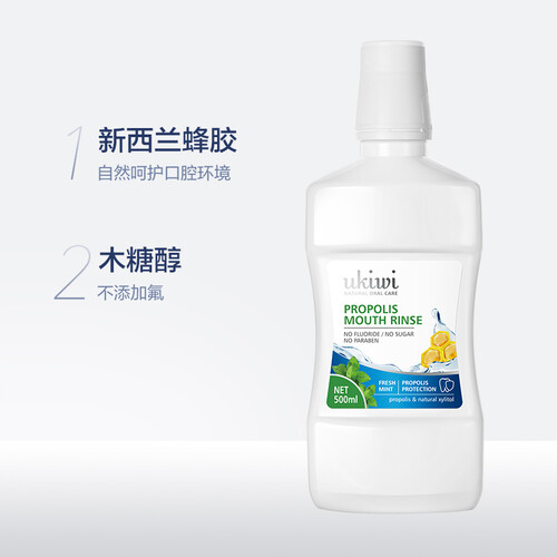 新西兰蜂胶成分,拥有出色的舒缓修复能力,可为牙齿带来一种天然保护力。萃取薄荷提取物,随时漱口,还你清新口气。