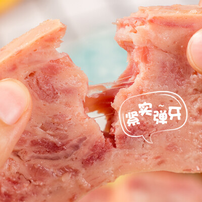 优选冷鲜猪后腿肉,低温腌制匠心制作,肉质紧实,色泽红润,Q弹有嚼劲,每一口都咬的到肉丝纤维。