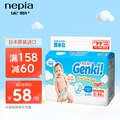 日本进口的妮飘纸尿裤,3倍弹力褶皱的腰围设计,360°无缝贴合肌肤,防止尿液后漏。双层无纺布和双导流吸收槽,能瞬吸尿液。