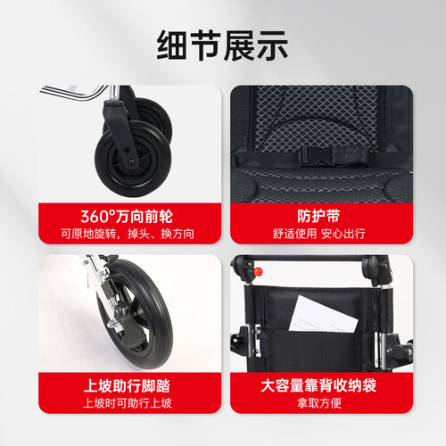 轻松面对坡度,不下滑,坡道停车更加安心,自由穿越各种地形,让出行更加简单,自重仅有7.5kg,承重能力强,管壁厚实。