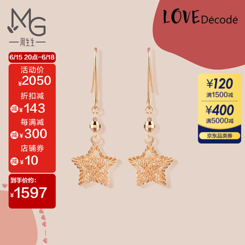 周生生 18K金星星耳饰