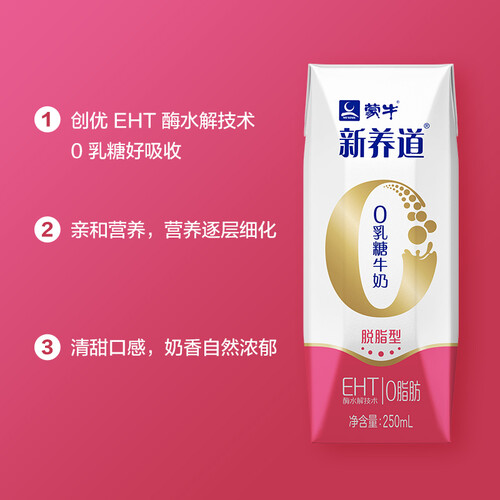 创优EHT酶水解技术的应用,使得乳糖深度水解,牛奶更为亲和肠胃,可直接空腹饮用。脱脂不脱味,保留了自然清甜的好滋味。