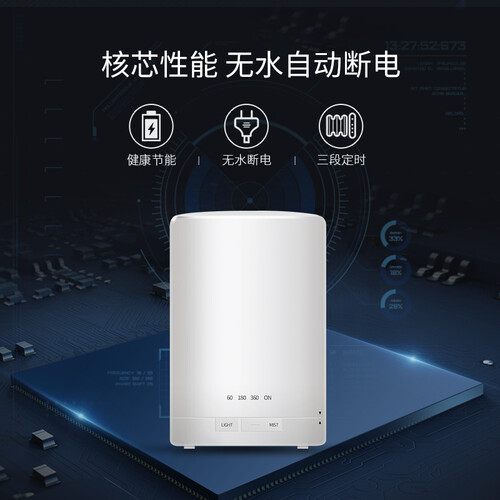 采用PP材质,安全又健康,同时琴键式按键,触摸手感好,而且上扬出雾口,桌面不积水,还有大开口设计,清洗更方便。