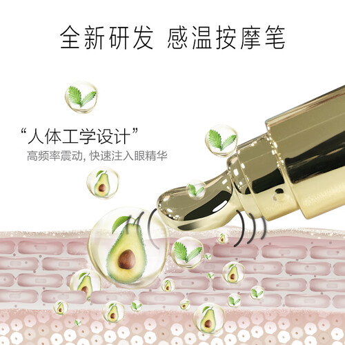 牛油果油精华,盈润淡纹,仙鹤草成分,有效抵御刺激。高频震动按摩,促进精华吸收,舒服舒缓疲累。