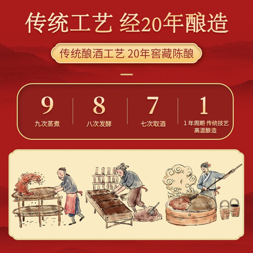 酒香平衡协调的浓酱兼香型口感,酒香平衡协调,口感馥郁醇厚,饮后满口生香无杂味。传统工艺结合现代技术酿制,更显匠心。