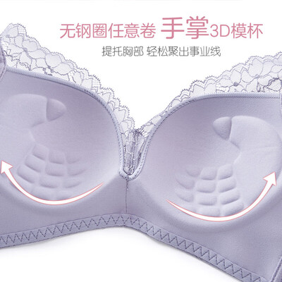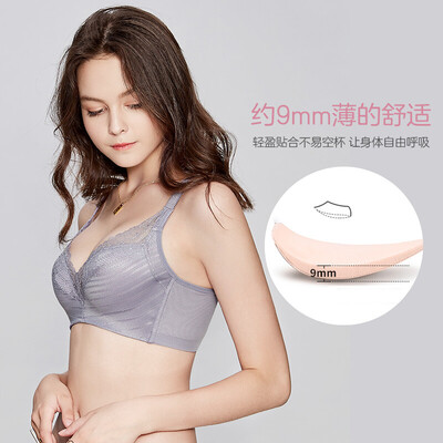 无钢圈蕾丝拼接手掌杯文胸,多角度贴合胸型,彰显女性优雅气质。加高侧比设计,隐藏副乳稳定胸型,凸显丰盈圆润的胸部曲线。
