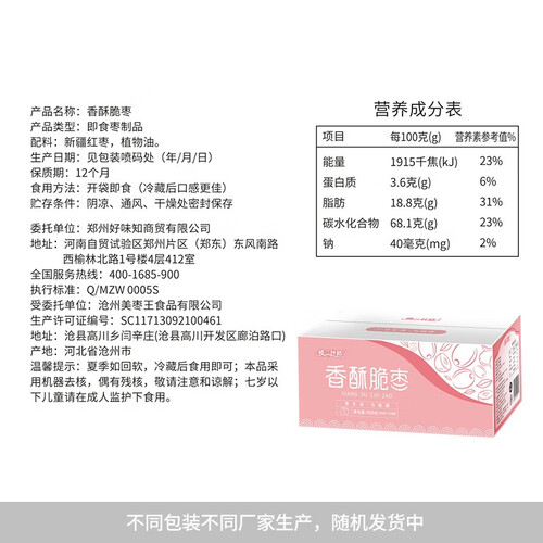 这款脆枣,吃起来香甜香脆,不油腻,大小均匀,颜色通红,味道很甜,有嚼劲。