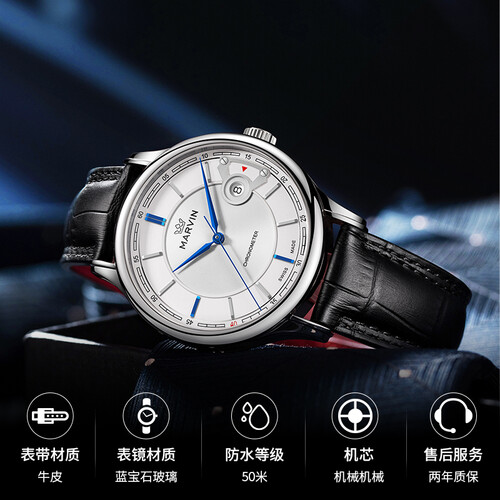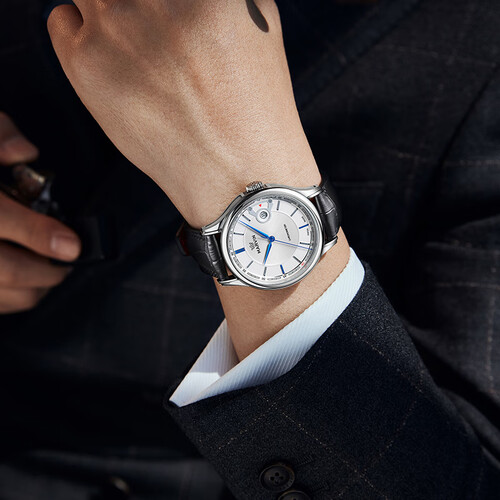 做工精致的蓝色指针设计,优雅大气,轻松凸显时尚雅致的绅士风范,搭载优质的瑞士机械机芯,性能稳定,走时误差更小。