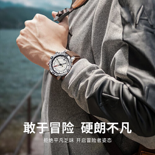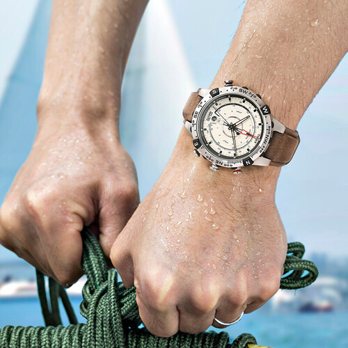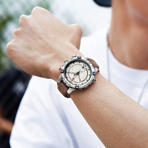 这款欧美表为爱好户外运动年轻人打造的运动手表,还有指南针功能设计,在户外可以分辨方向,非常实用,还有可以测量温度的功能。