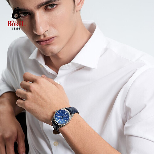 依波路沉稳蓝皮带瑞表