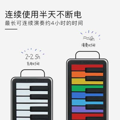 琴身选用迷你小巧型设计,可以随身携带,随时玩耍。优质电池,长时间续航,减轻妈妈们反复充电的麻烦。