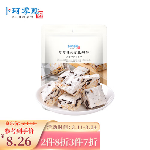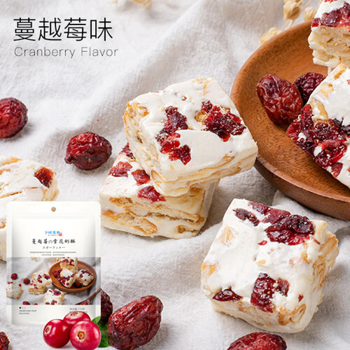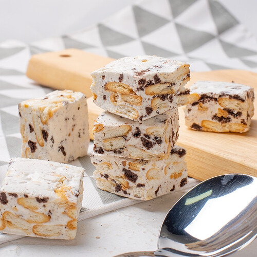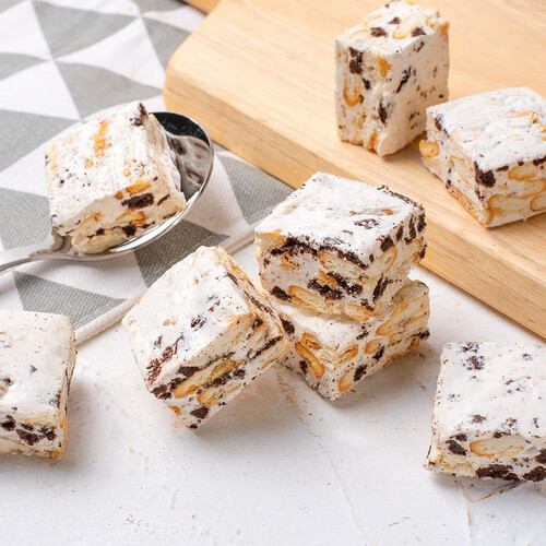 可可风味的雪花酥拥有多种美味食材,味道层次丰富。入口微甜,口感松软轻盈,让你吃后念念不忘。