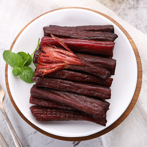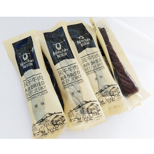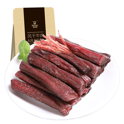 内蒙古特产风干牛肉干,通过手工切条、腌制、风干、烘烤等多种工艺加工,保留营养。而且肉香浓郁,口感润而不柴,柔韧耐嚼。