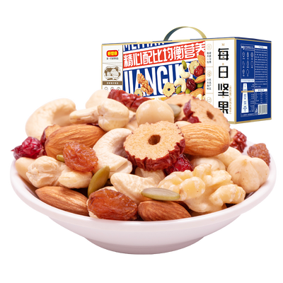 别致的包装设计,送礼彰显格调。内里的坚果经过科学配比调制,一小袋含有充足的营养,为身体补充能量。