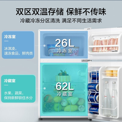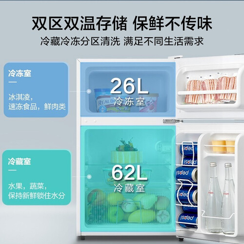 冰箱设有控温旋钮,可灵活设置温度,满足不同季节下的温控需求。小巧玲珑机身,灵活放置不占地。