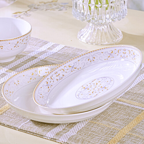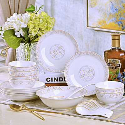 传世瓷 金边环绕碗碟套装