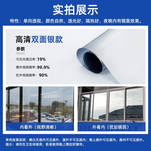 防晒贴膜的隔热性非常的好,防止爆裂,使用起来更加安全。外观安全美观,贴在玻璃上还增加美感,为阴影过滤强光。