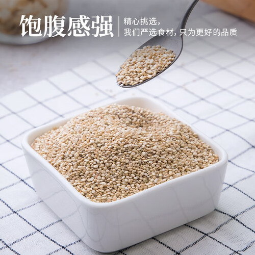 经过两道筛选,去除杂质,保证藜麦颗粒干净,气味清香。甄选灰藜麦,膨胀发芽率高,保证营养,软糯易嚼,口感更好。