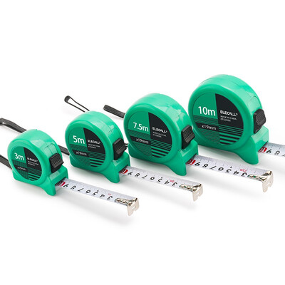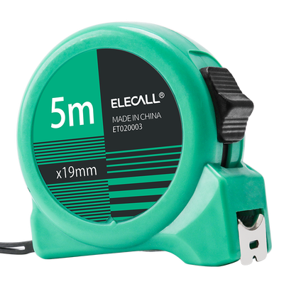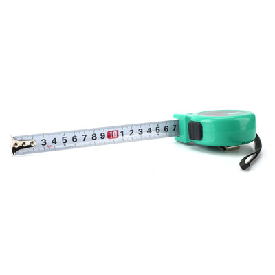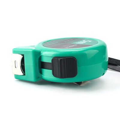 充满光泽感的绿色外壳,塑料材质不易变形开裂。搭载锁扣按钮,滑下后尺带固定牢固,有效避免回缩划伤手指。