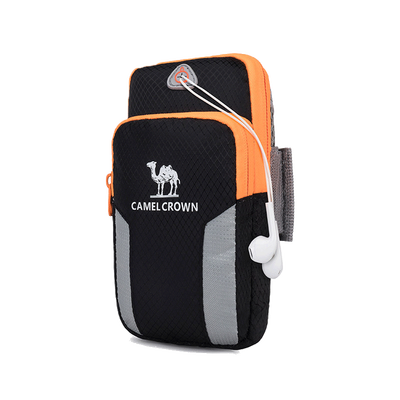 休闲感的竖款手机臂包,通过侧边橙色的点缀,休闲感的手机臂包外观上也很吸睛。