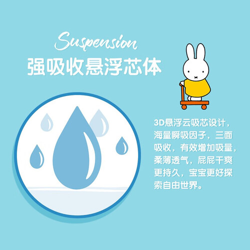米菲云吸畅爽拉拉裤,采用强吸收悬浮芯体,海量瞬吸,让宝宝畅享舒爽;搭配双层防漏设计,避免侧漏,满足宝宝好动天性。