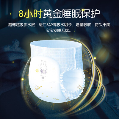 采用超薄锁水层,含有SAP高吸水因子,持久干爽,让宝宝舒适睡眠;采用3D夜用立体芯设计,导流迅速、锁水效果较好。