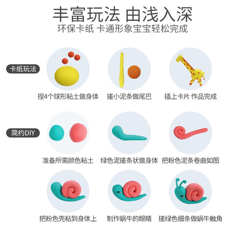 通过彩泥的方式,可以锻炼宝宝的手眼协调,安全无异味的原材制作,妈妈更放心。