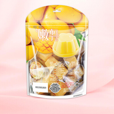 外观晶莹剔透,色泽明亮,口味十分浓郁而且富含果肉颗粒,很有嚼感。果冻本身的爽滑再加上芒果味道的香甜,口感Q弹爽滑。