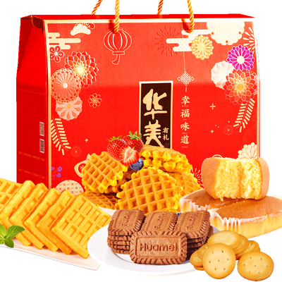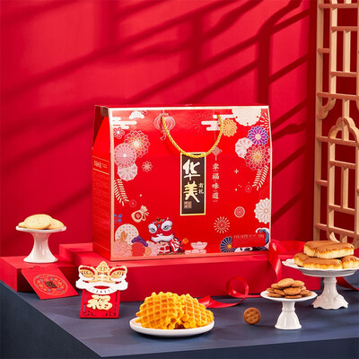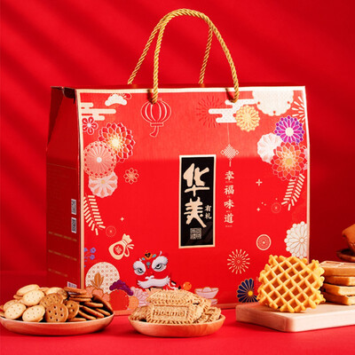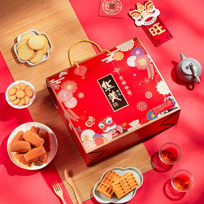 精致礼盒采用喜庆的红色,适合在逢年过节走亲访友时赠送表达情意。多种口味的饼干可以满足不同的口味需求,可随心尽享。